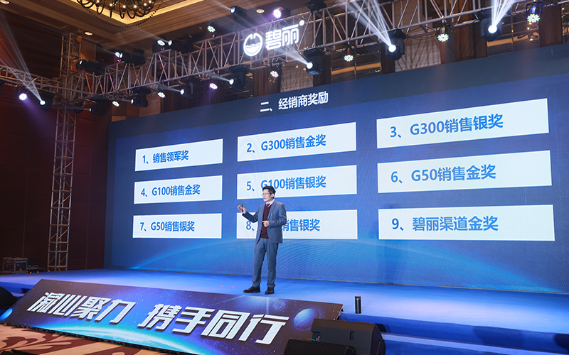 為了回報(bào)各位碧麗家人,答謝廣大終端客戶,2023年碧麗將以更為優(yōu)質(zhì)的產(chǎn)品、心動(dòng)的政策感謝大家的支持,激勵(lì)各位經(jīng)銷商伙伴不斷前進(jìn)。峰會(huì)上,碧麗集團(tuán)公布了2023年?duì)I銷政策、激勵(lì)政策、電商政策,表彰了"銷售冠軍獎(jiǎng)"、"銷售領(lǐng)軍獎(jiǎng)"、"G100銷售金獎(jiǎng)"、"G100銷售銀獎(jiǎng)"等多個(gè)獎(jiǎng)項(xiàng),并頒發(fā)了獎(jiǎng)牌、豪華獎(jiǎng)品以資鼓勵(lì),真正的為經(jīng)銷商帶來了看得見的實(shí)惠。